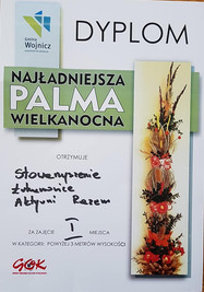 Nasza palma została zgłoszona do konkursu organizowanego przez GOK w Wojniczu i..... zdobyła uznanie komisji konkursowej oraz została uznana najładniejszą palmą wielkanocną w kategorii: powyżej 3 metrów wysokości!